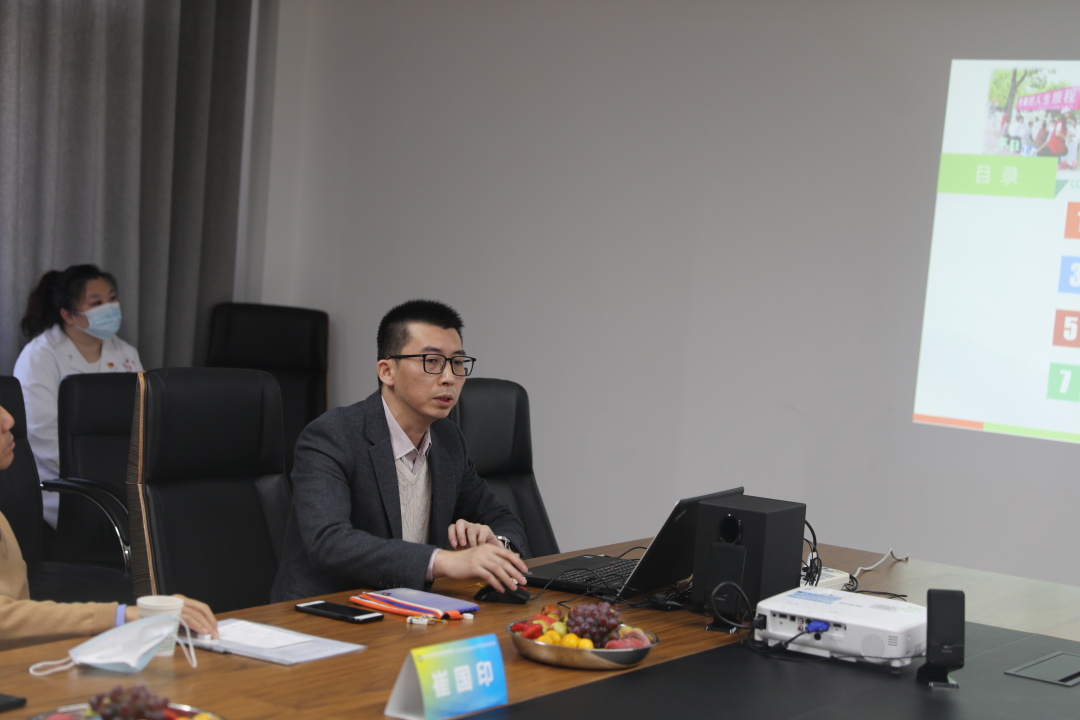 现场考察座谈会上,榆林市星元医院党委书记、院长王建睿对远道而来的香港李嘉诚基金会宁养项目办领导表示了热烈的欢迎和衷心的感谢,并就星元医院建设“8818”重点学科、人才引进、购入大型医疗设备、改善环境、推进智慧医院、打造“有温度”医院、设立星元医院大病救助基金、文化建设以及党建等方面作了详细汇报。