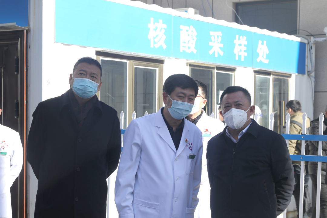 崔飞区长等一行实地检查了榆林市星元医院预检分诊、核酸检测、门诊大厅、住院病区、智慧药房、检验科等区域和关口,对预检分诊双码查验流程、发热患者处置流程、医务人员自我防护、院内清洁消毒、核酸检测预约与采集、病区管理等防控措施落实情况进行了全面督导。