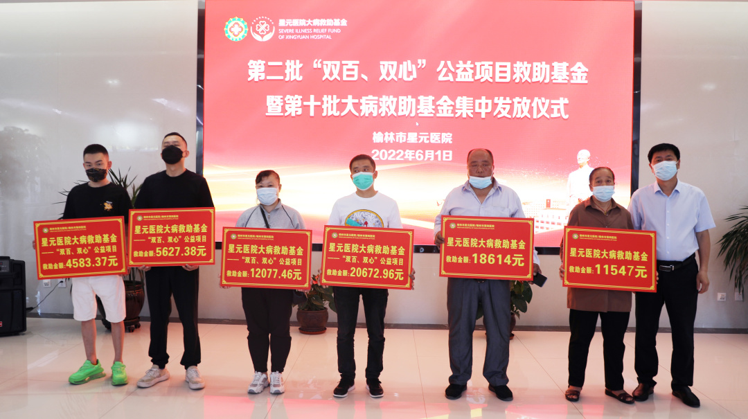 2020年12月16日,榆林市星元医院联合区慈善协会共同设立了“星元医院大病救助基金”,帮助在星元医院住院的大病及急危重症困难患者走出困境,重燃生活的希望,自基金设立以来,已累计救助180名困难患者支付医疗费用超过160万元。