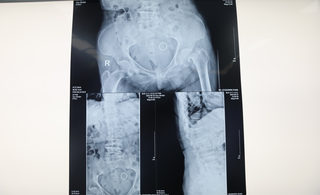 救助的患者79岁,在行走时不慎滑倒,近日疼痛加剧,到医院检查后诊断为左股骨颈骨折、腰椎骨折、骨质疏松,且患有高血压、腰椎管狭窄症、冠心病、脑梗等基础病。