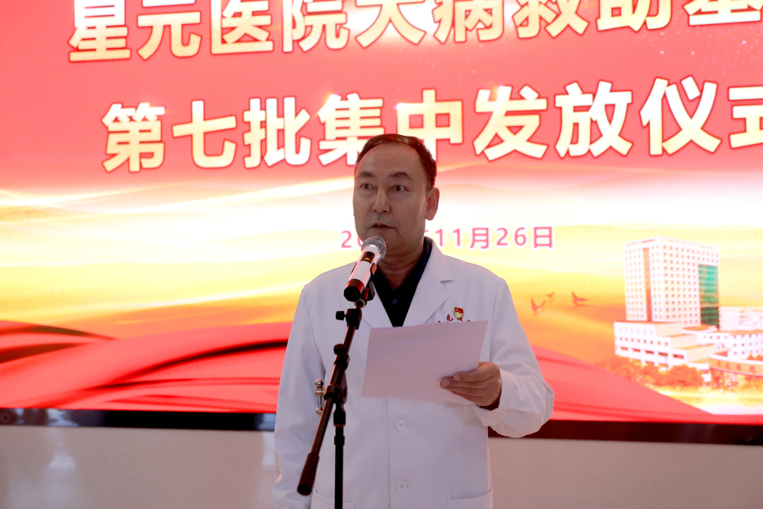榆林市星元医院党委书记、院长王建睿在讲话中指出,为了弘扬和传承胡星元老先生“无私奉献,造福桑梓”的赤子情怀,帮助在星元医院住院的大病及急危重症困难患者走出困境,重燃生活的希望,2020年12月16日,榆林市星元医院联合区慈善协会共同设立了“星元医院大病救助基金”。自基金设立以来,已累计帮助80名困难患者支付医疗费用82万余元,希望救助的患者朋友和家属能积极战胜疾病,勇敢面对暂时的困难,尽快走出人生低谷。