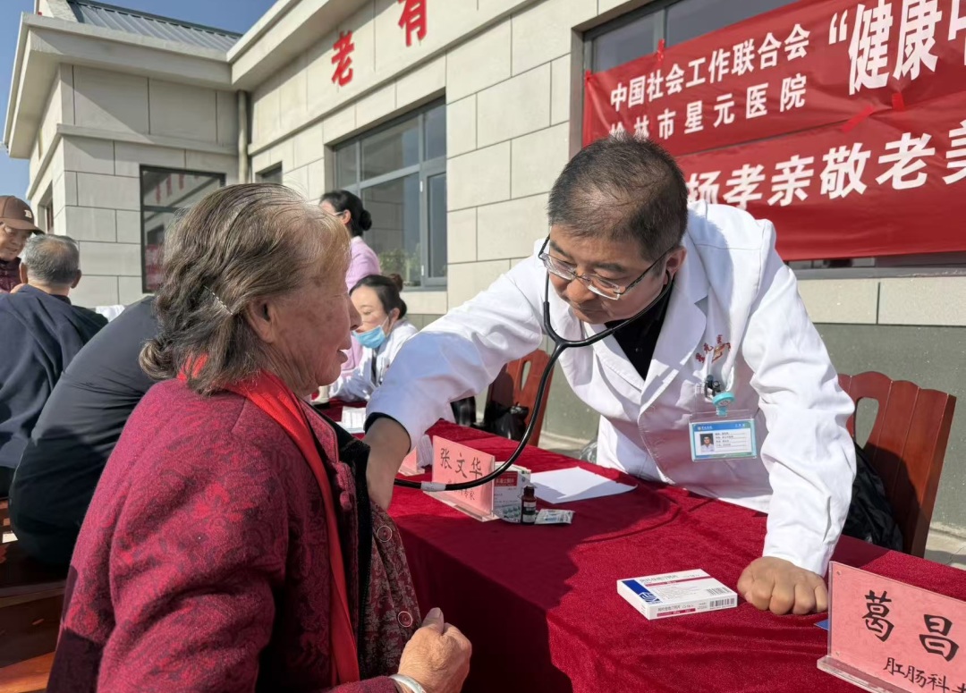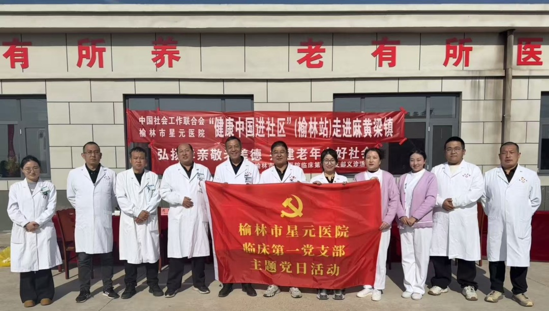 在重阳节来临之际,为弘扬传承中华民族“尊老、敬老、爱老传统美德”。2025年10月28日榆林市星元医院临床第一党支部参加由榆阳区民政局、老龄健康服务中心主办,榆林市星元医院协办的榆阳区“敬老月”活动走进榆阳区麻黄梁镇十八村开展的“弘扬孝亲敬老美德 共建老年友好社会”主题党日义诊活动。