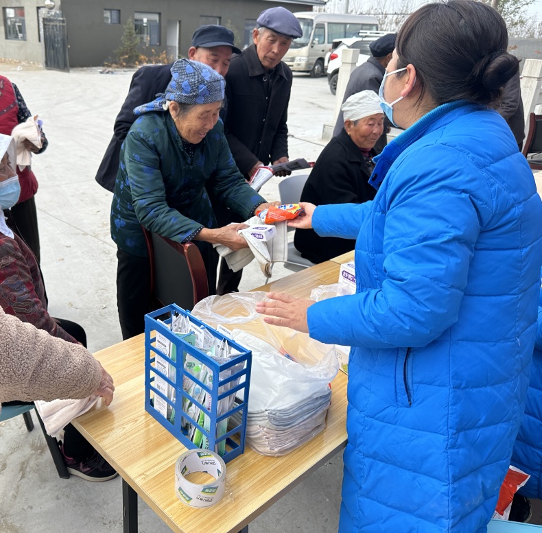 此外,活动现场志愿者们给老年朋友们发放了“暖心礼包”,包括毛巾、牙膏、牙刷、洗衣粉等日常用品一应俱全。毛巾,拭去的是岁月的风霜,带来的是每日的清爽;牙膏牙刷,守护的不仅是牙齿的健康,更是晚年的尊严与体面;洗衣粉,洁净的不仅是衣衫,更是让老人们以整洁的姿态,迎接每一个充满阳光的日子。这些物品,朴实无华,却直抵人心。它们代表了我们对长辈们日常生活的真切关注,体现了“老吾老以及人之老”的崇高风尚。这份关爱,让尊老敬老不再是一句口号,而是化作了触手可及的温暖。发放“暖心礼包”时,志愿者们耐心地将物资送到每一位老人手中,并叮嘱他们注意防寒保暖、保重身体。老人们脸上洋溢着幸福的笑容,纷纷感谢这份来自社会的牵挂与温暖。“你们想得太周到了,这些东西我们天天都用得上!”一位爷爷拿着崭新的毛巾,高兴地说道。