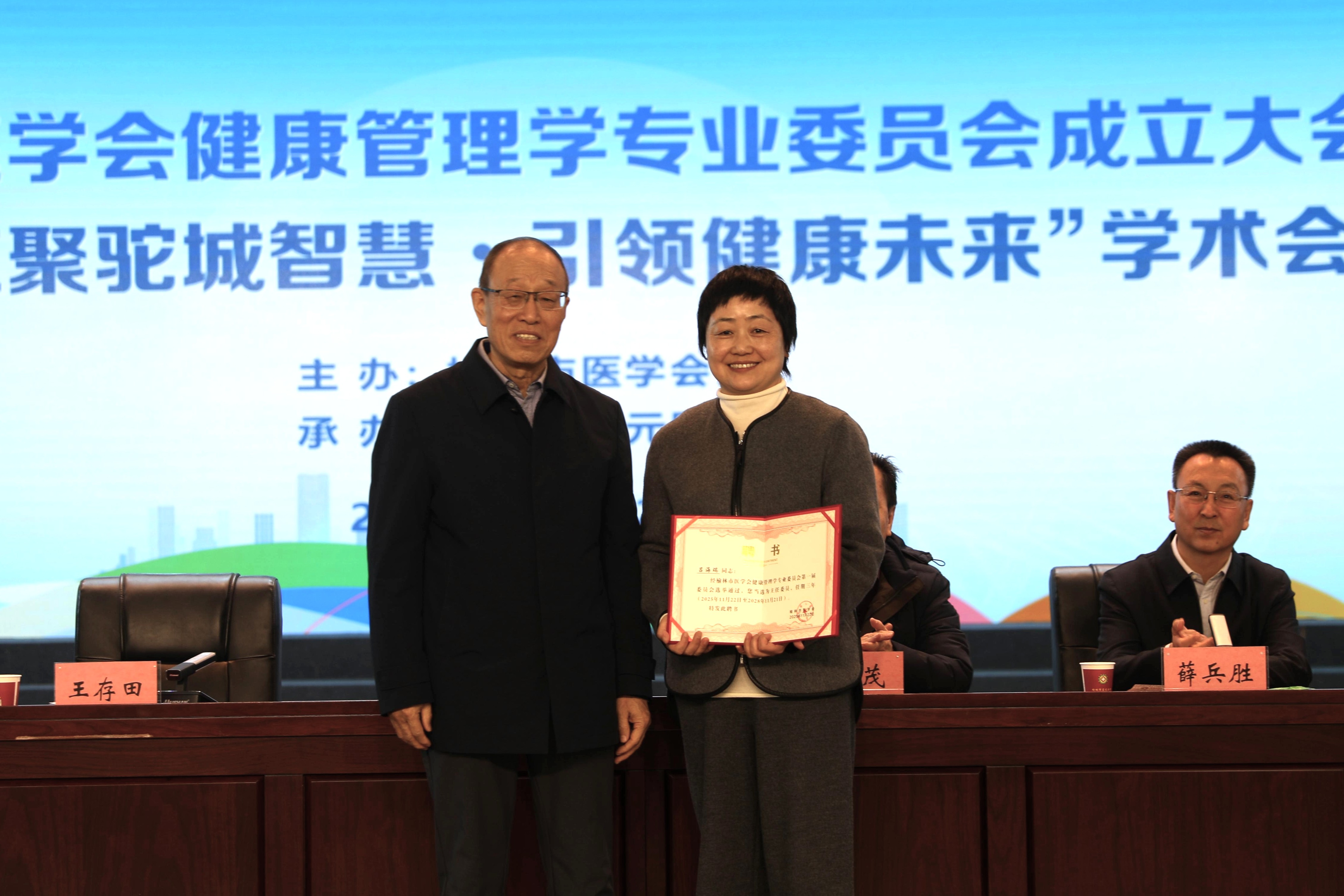 王存田会长为榆林市医学会健康管理学专业委员会授牌。