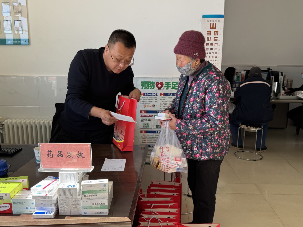 义诊现场,医护人员为村民提供了包括超声、心电图、血糖、血压在内的多项免费检查。仅一上午时间,就完成各类检查100余人次,根据检查结果现场发放药品150余份,真正实现了“检查+诊断+用药”一站式服务。