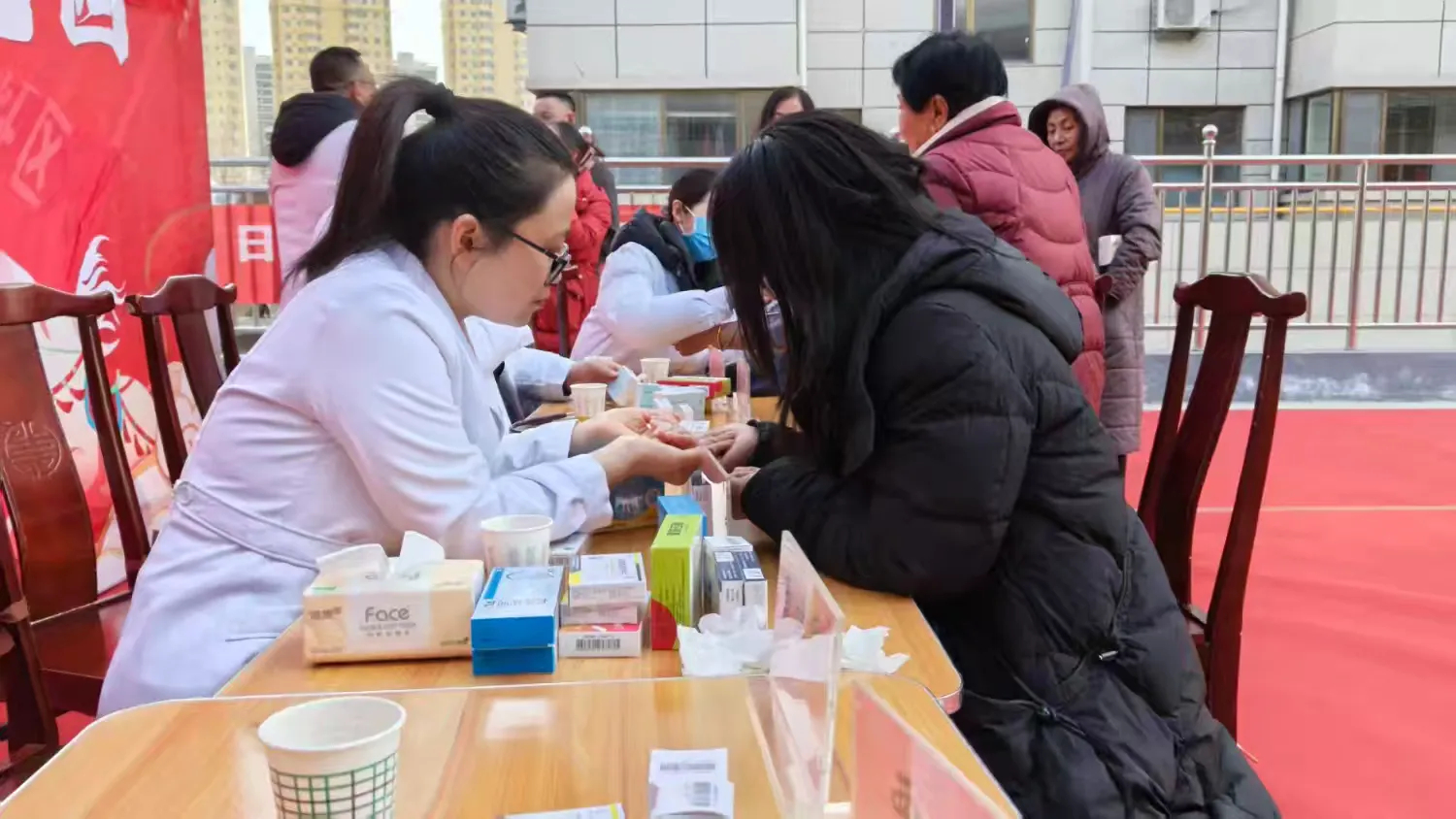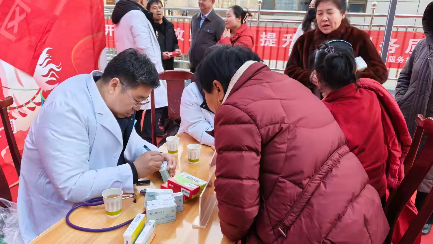 本次义诊团队由手术麻醉科专家曹建军、骨科专家刘鹏军、乳腺外科专家贾瑶、心内科专家周永峰、妇产科专家刘雅淑等组成,现场共接诊百余人,发放各种药品120余盒,B超20余人,测量血压、血糖80余人,发放健康宣传资料百余份。
