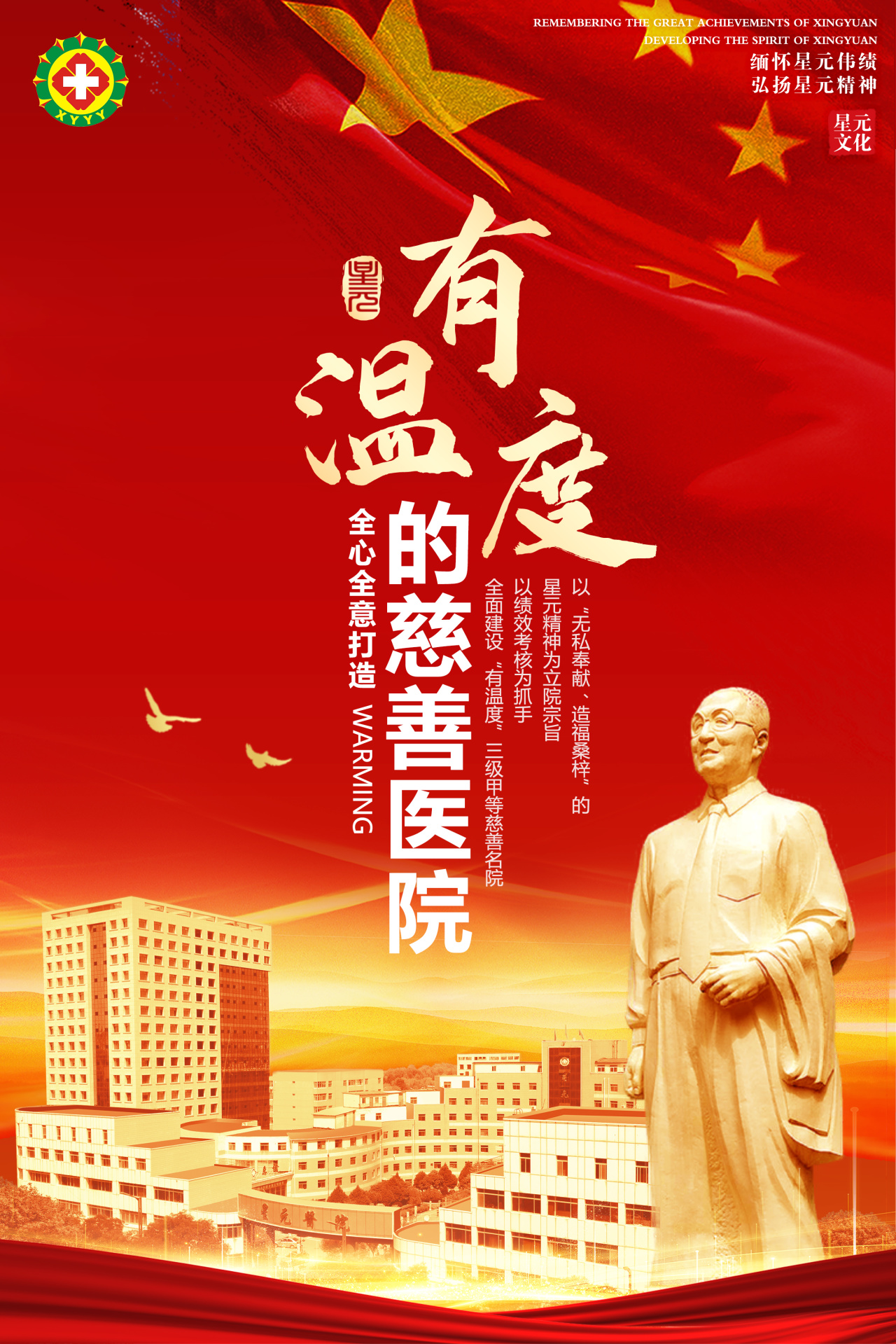 医院以习近平新时代中国特色社会主义思想为根本遵循,深入贯彻党的二十大及二十届历次全会精神,不断深化党建与业务融合,推出“党员进社区1+1+1”“健康细胞宣讲团”“支部助力乡村振兴”“星元医院大病救助基金”“信易医”“红培星元 健康365”六个特色党建品牌,通过义诊、科普等惠民举措,为群众提供健康保障,增强群众获得感。连续26年资助困难大学生,推进大学生暑期社会实践项目,提供实习岗位,开展学雷锋等活动,践行社会责任。