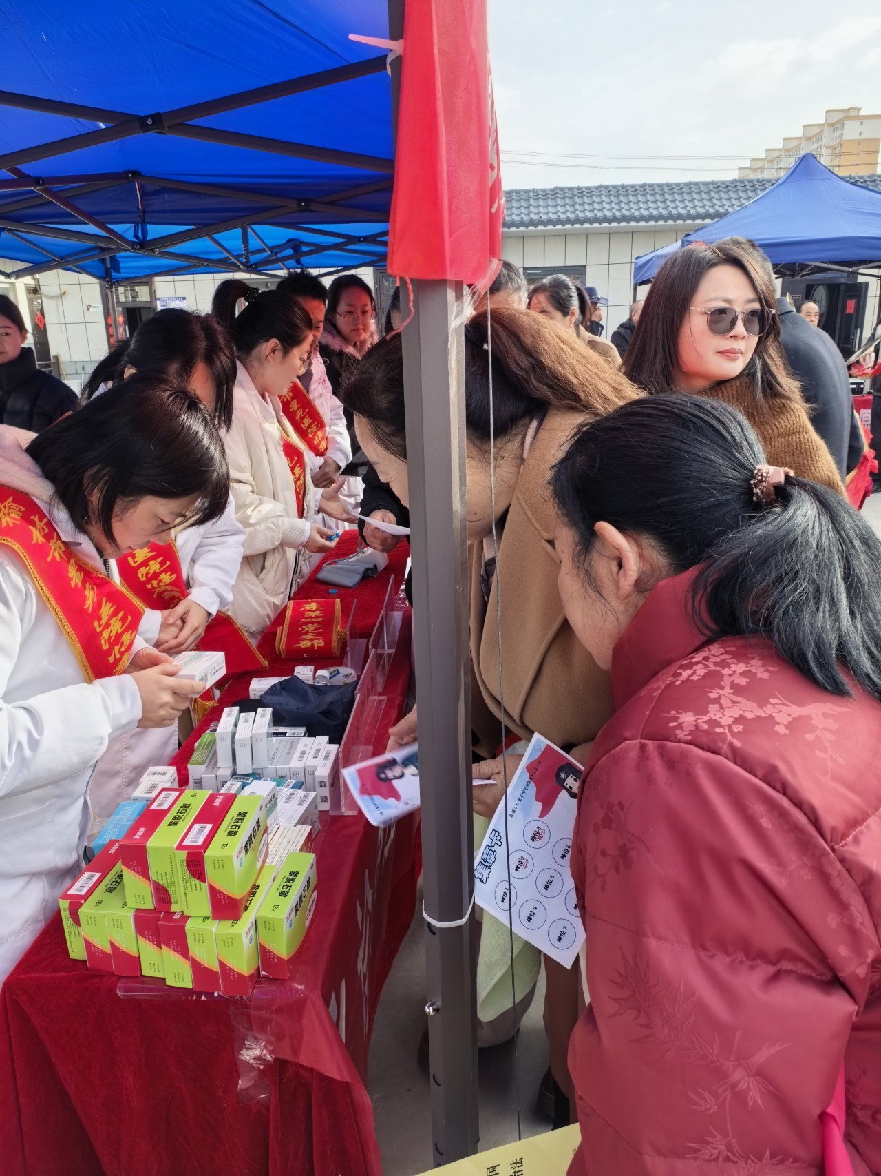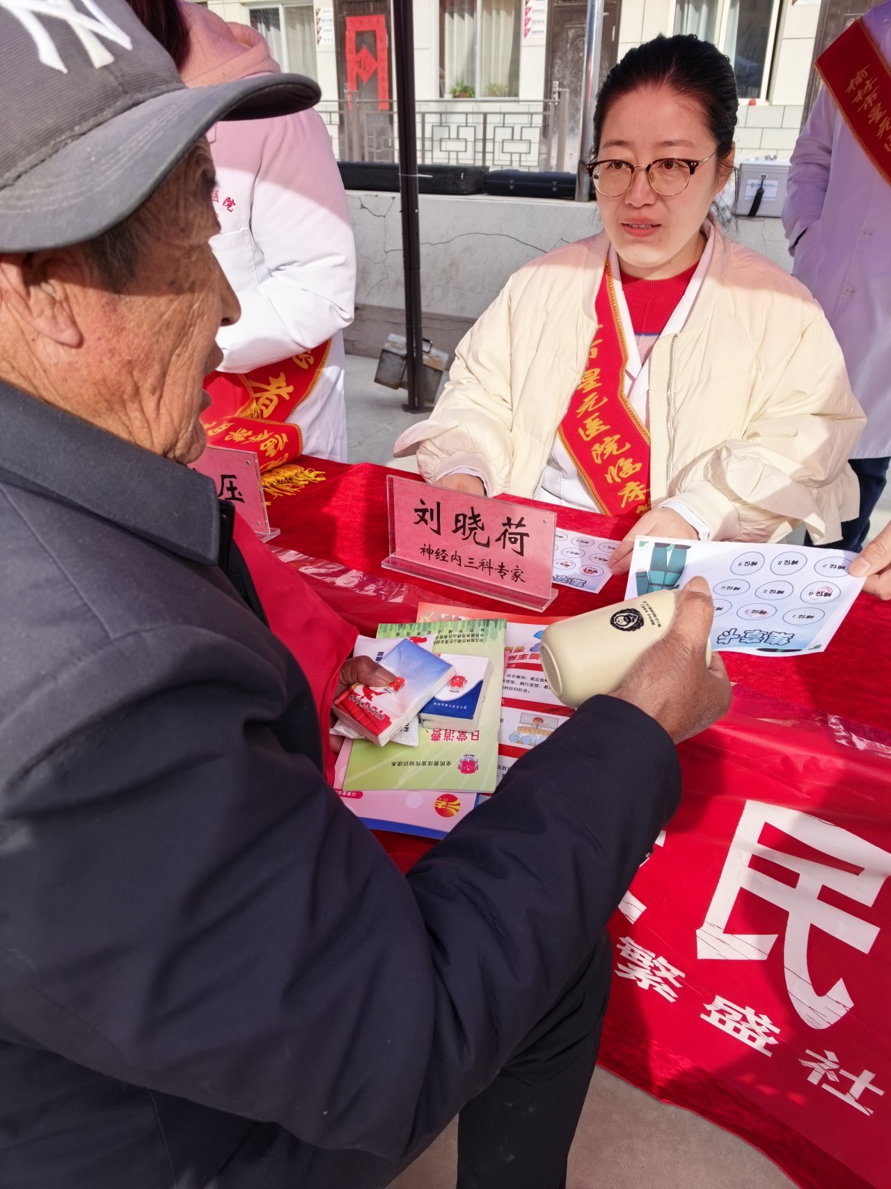 医护团队为居民们免费测量血压、血糖,进行基础体格检查,仔细询问病史、分析症状,一对一制定个性化健康方案。党员志愿者维持秩序、发放健康宣教手册,免费药品,普及慢性病管理、安全用药等知识,把健康理念传递到每一位居民心中。现场暖意融融,专家们专业严谨、细致耐心的服务,赢得群众一致称赞。
